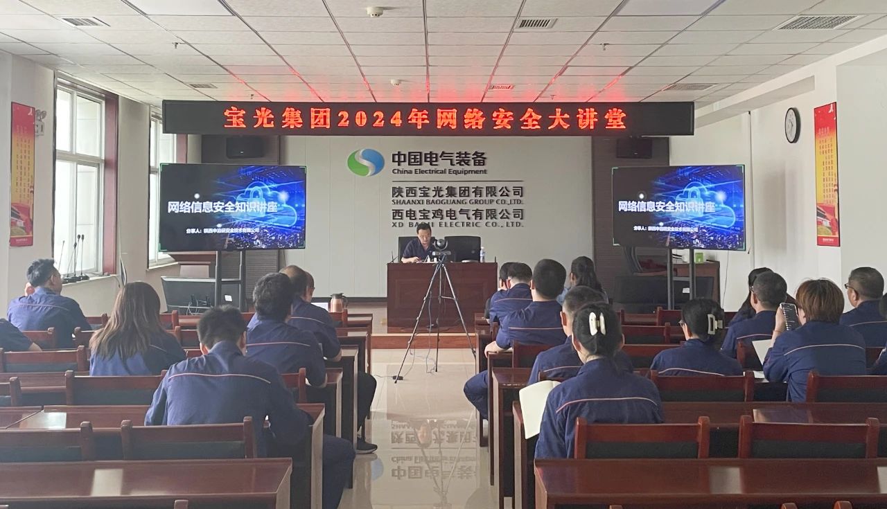 為進(jìn)一步提升廣大職工網(wǎng)絡(luò)安全應(yīng)用能力,加強(qiáng)員工網(wǎng)絡(luò)安全意識,普及網(wǎng)絡(luò)安全知識,營造安全、健康、文明的網(wǎng)絡(luò)環(huán)境,按照網(wǎng)絡(luò)安全宣傳周活動安排,9月12日,寶光集團(tuán)舉辦了2024年網(wǎng)絡(luò)安全大講堂活動,寶光集團(tuán)(西電寶雞電氣)副總經(jīng)理成鵬志出席會議并講話。寶光集團(tuán)、西電寶雞電氣所屬各部門負(fù)責(zé)人、業(yè)務(wù)骨干和信息員參加會議,寶光股份、寶光智能等各業(yè)務(wù)單元相關(guān)負(fù)責(zé)人視頻參會。