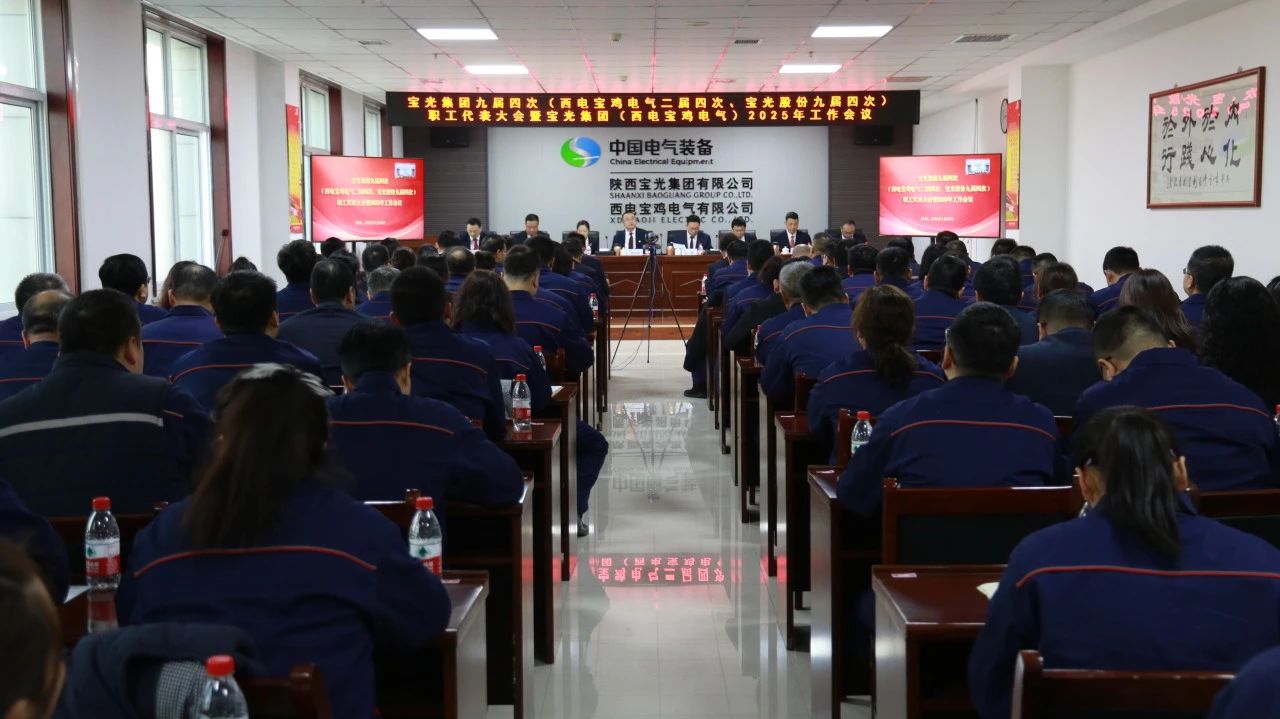 1月20日,寶光集團(股份)九屆四次、西電寶雞電氣二屆四次職工(會員)代表大會暨2025年工作會議勝利召開。會議以習近平新時代中國特色社會主義思想為指導,深入學習貫徹黨的二十大和二十屆三中全會精神,持續鞏固拓展習近平新時代中國特色社會主義思想主題教育成果,全面落實中國電氣裝備集團、中國西電集團(以下簡稱“集團公司”)2025年工作會議內容,總結回顧2024年各項工作,研究部署2025年目標任務,團結動員全體干部職工上下一心、主動作為,以更加清醒的戰略定力、更加創新的管理思維、更加務實的發展舉措,不斷深化科技引領、加快智能化轉型升級、持續構建新質生產力,為寶光集團高質量發展開啟新篇章。