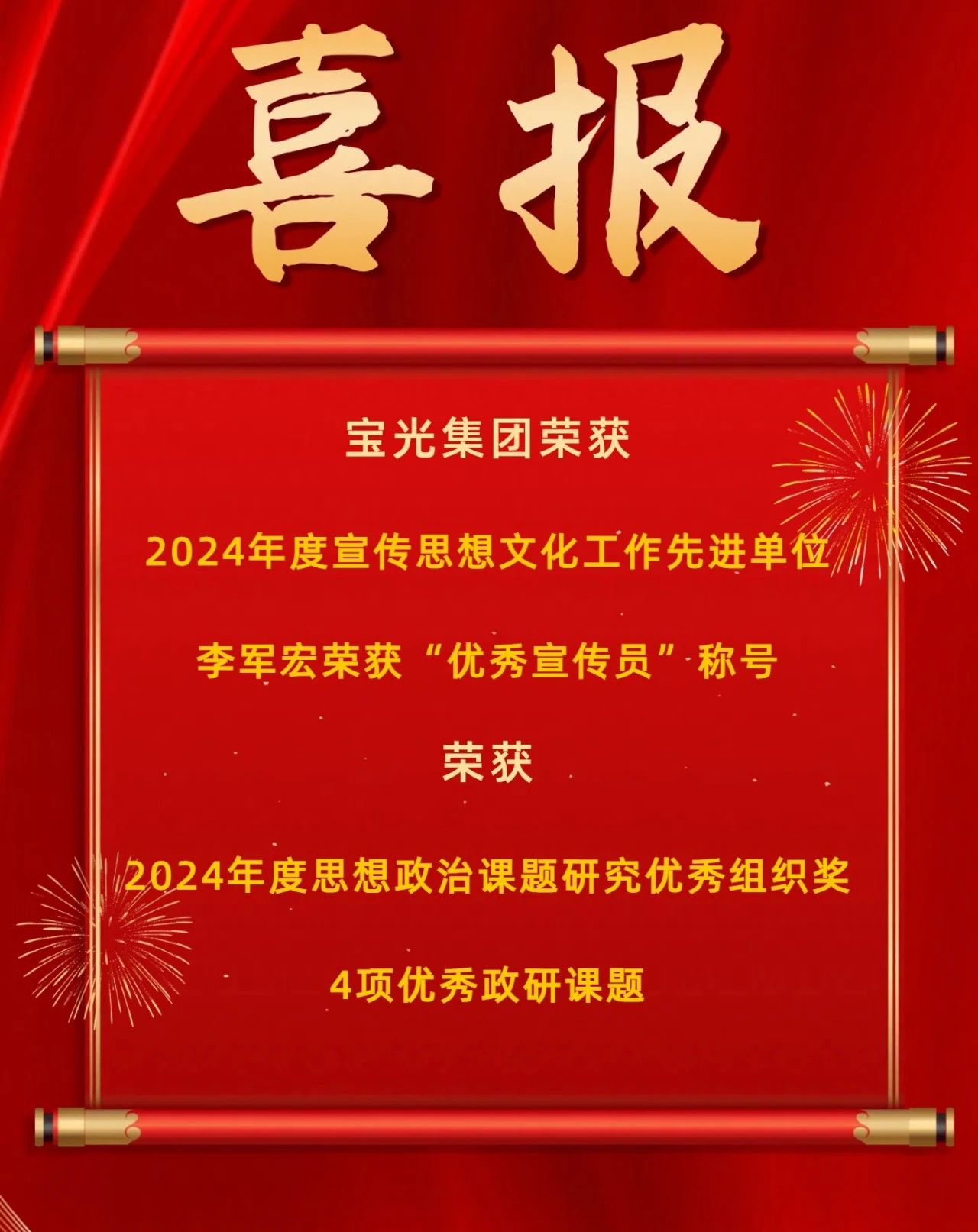 2024年,在中國西電集團(tuán)黨委的堅(jiān)強(qiáng)領(lǐng)導(dǎo)下,寶光集團(tuán)黨委堅(jiān)持以習(xí)近平新時(shí)代中國特色社會主義思想為指導(dǎo),深入學(xué)習(xí)貫徹黨的二十大、二十屆二中、三中全會精神,按照中國西電集團(tuán)黨委宣傳思想文化工作部署,緊緊圍繞企業(yè)生產(chǎn)經(jīng)營中心任務(wù),以“三個(gè)突出”為抓手、以“三個(gè)特色”為牽引,讓宣傳思想文化工作“立”起來、“活”起來、“強(qiáng)”起來,全年實(shí)現(xiàn)了政治引領(lǐng)、安全平穩(wěn)、干字當(dāng)頭、再創(chuàng)新高的良好發(fā)展新局面。