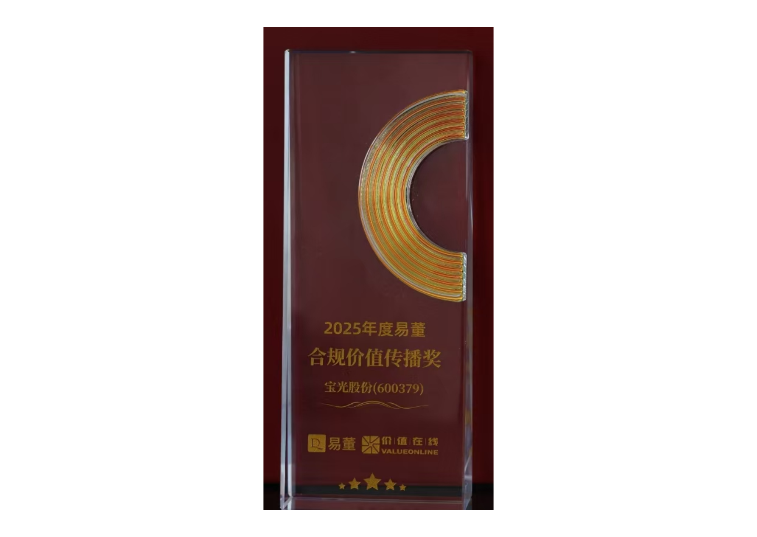 近日,由易董價值在線、上市公司董秘百人會聯合主辦的“聚焦創新 引領價值——上市公司可持續發展與價值提升論壇”隆重舉辦。寶光股份受邀參會并獲“2025年度合規價值傳播獎”。
